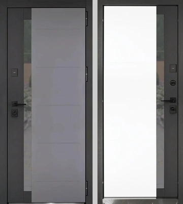 Уличная дверь со стеклопакетом гладкий Металлик белый