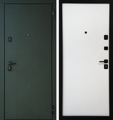 Металлическая дверь МДФ с фрезеровкой Тёмный лес Белоснежный термо