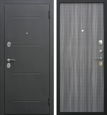 Входная дверь с порошковым напылением и МДФ внутри Графитовый серый Седой дуб с утеплителем