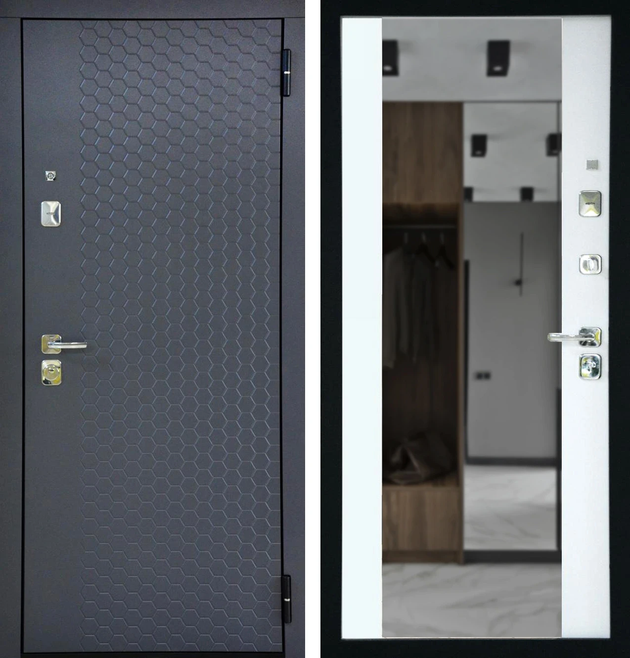 Входная дверь с терморазрывом с зеркалом МДФ узор «Шестиугольники»