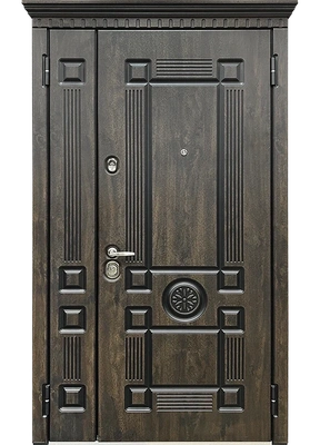 С терморазрывом двухстворчатая дверь с декоративной фрезеровкой МДФ Дуб коричневый