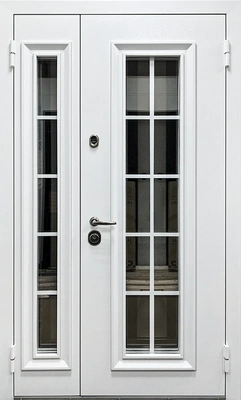 Белая дверь для улицы порошковое напыление со стеклопакетом термо