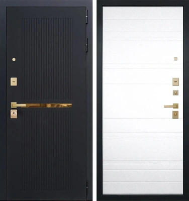 Входная дверь с декоративным молдингом МДФ Обсидиановый Белый дым с терморазрывом