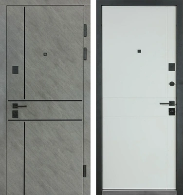 Лофт дверь с молдингом МДФ Серый мрамор Дымчатый белый уличная