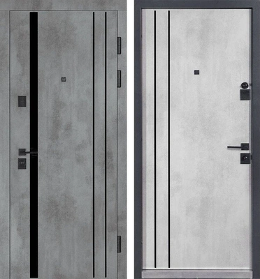 Дверь с терморазрывом с черной стеклянной вставкой МДФ Бетон