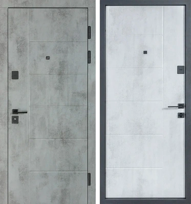 Металлическая дверь с черной фурнитурой МДФ Бетон светлый