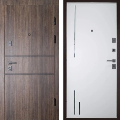Входная дверь в современном стиле МДФ Темное дерево Снежный кашемир