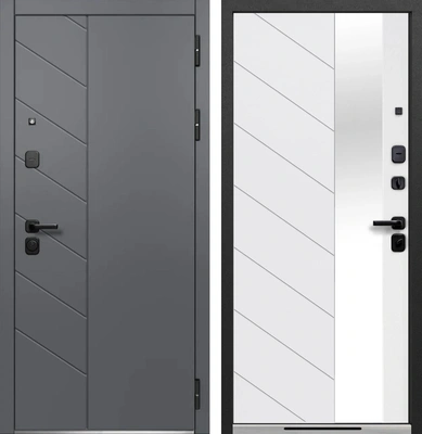 Стальная дверь незамерзающая МДФ с зеркалом дизайн диагональ Гладкий серый Белый