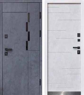Холодостойкая входная дверь с декором МДФ Сумрачный Белый дым