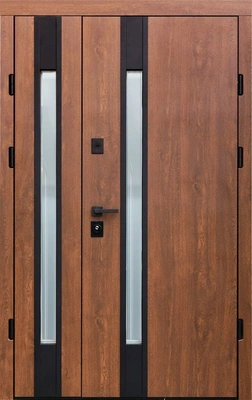 Уличная входная дверь со стеклом полуторная МДФ Дуб миндальный