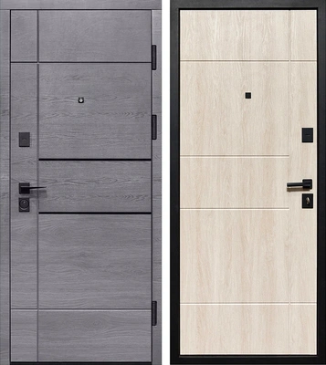 Входная дверь в стиле модерн МДФ Тик серый Лиственница полярная