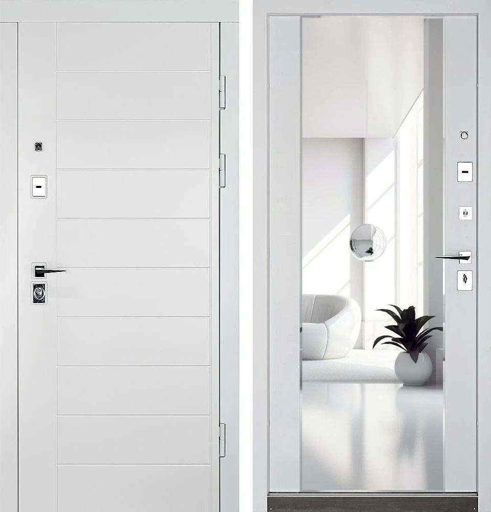 Входная металлическая МДФ белый с эмалью зеркало внутри