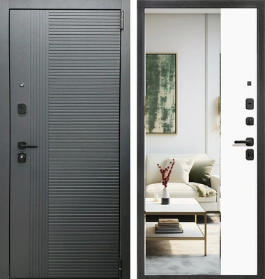Металлическая дверь с зеркалом МДФ Грей Белый «Линии» термо