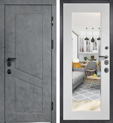 С утеплителем металлическая дверь с зеркалом МДФ Бетонно-серый «Холст»