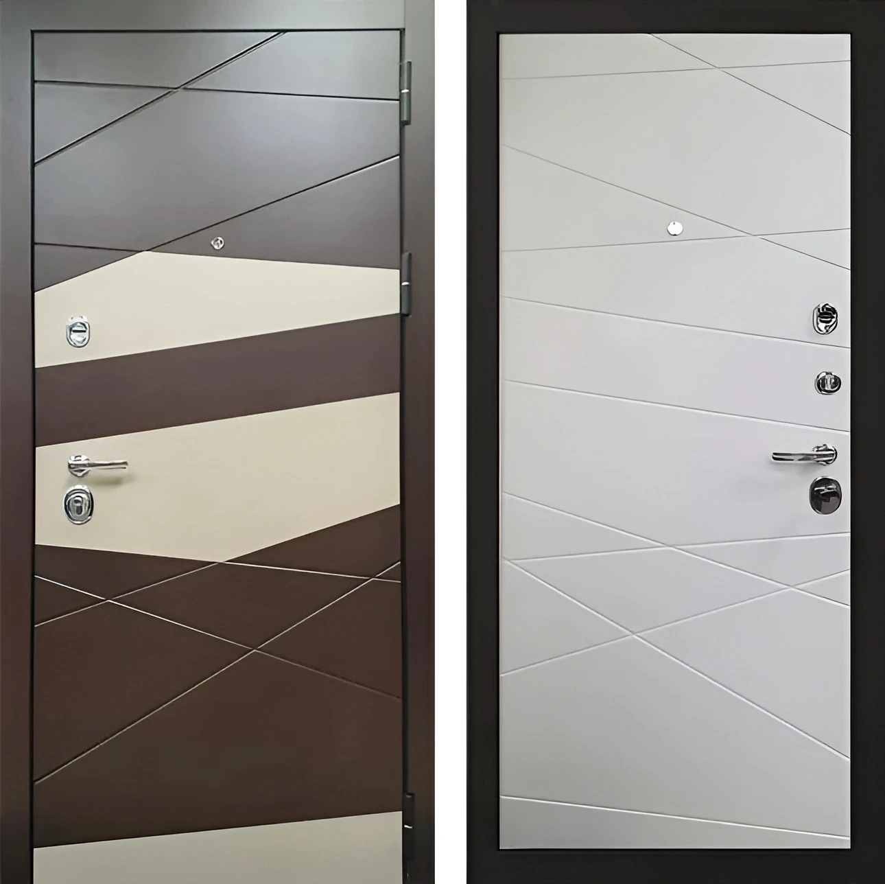 Холодостойкая дверь входная геометрические линии МДФ Коричневый софт Бежевый шелк