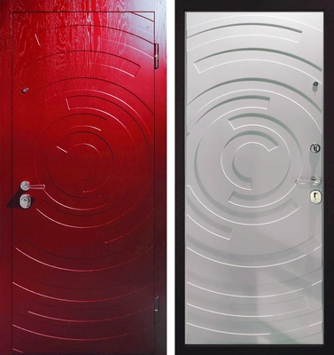 Яркая дверь МДФ с круглым узором Красный Белый антик незамерзающая