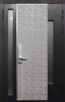 С утеплителем входная дверь с боковым остеклением МДФ Венге волны с двумя створками открывания