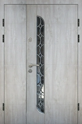 Холодостойкая полуторная дверь с боковой фрамугой и стеклом МДФ Ясень серый