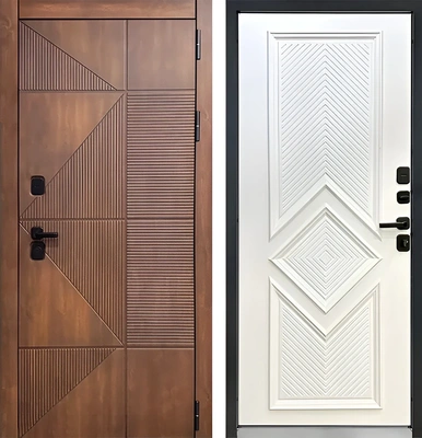Одностворчатая дверь терморазрыв с геометрическими узорами МДФ Орех