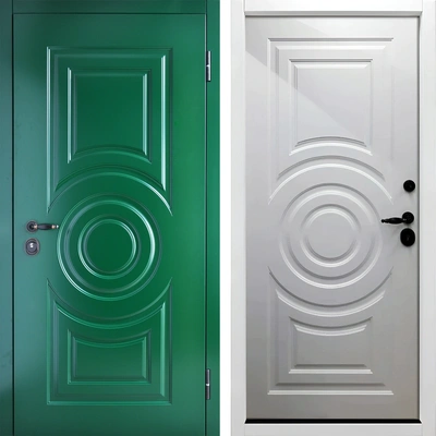 Незамерзающая входная одностворчатая дверь МДФ Зеленый Белый