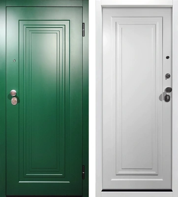Входная дверь в английском стиле МДФ Изумрудный Каскад с круглой ручкой терморазрыв