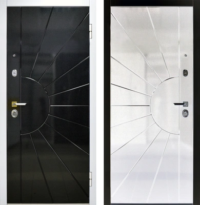 Входная дверь морозостойкая «Восход и закат» МДФ Оникс Белоснежный глянцевый