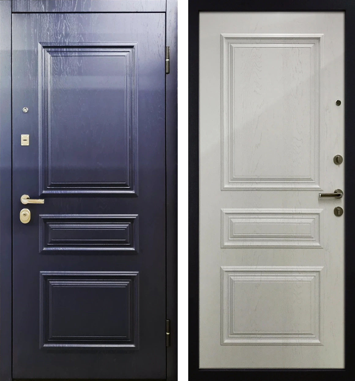 Филенчатая входная дверь холодостойкая МДФ Тёмно-синий Дуб Белёный в английском стиле