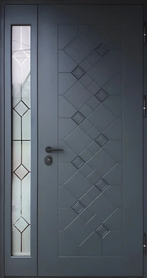 Незамерзающая входная дверь графит МДФ с витражным стеклопакетом и 3D-геометрическим узором
