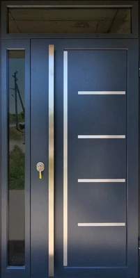 Входная дверь холодостойкая с длинной ручкой и молдингом боковая и верхняя фрамуги