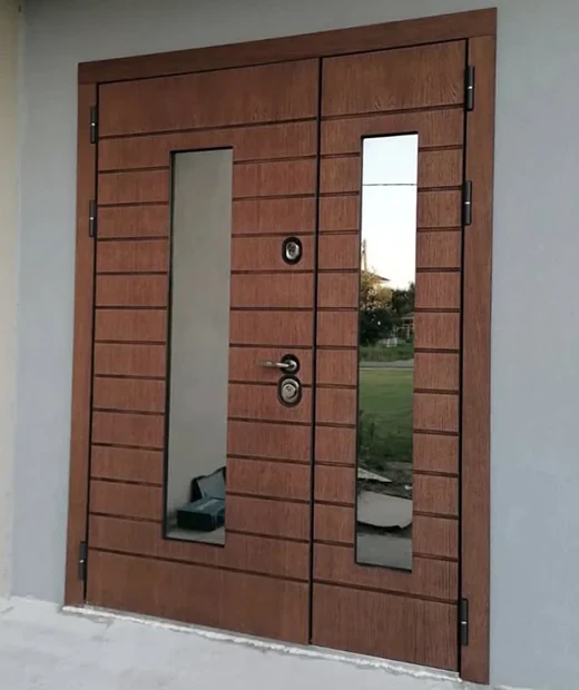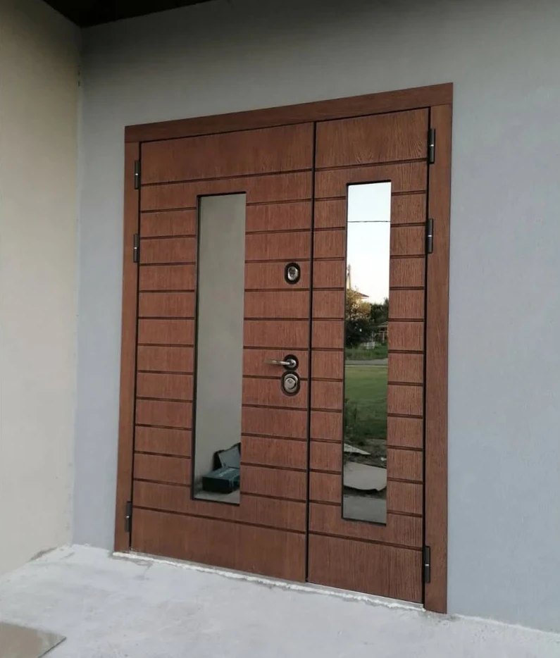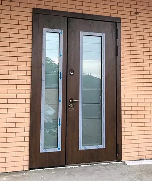 Коттеджная дверь двустворчатая с трёхкамерным стеклопакетом и терморазрывом