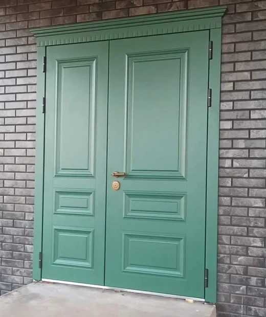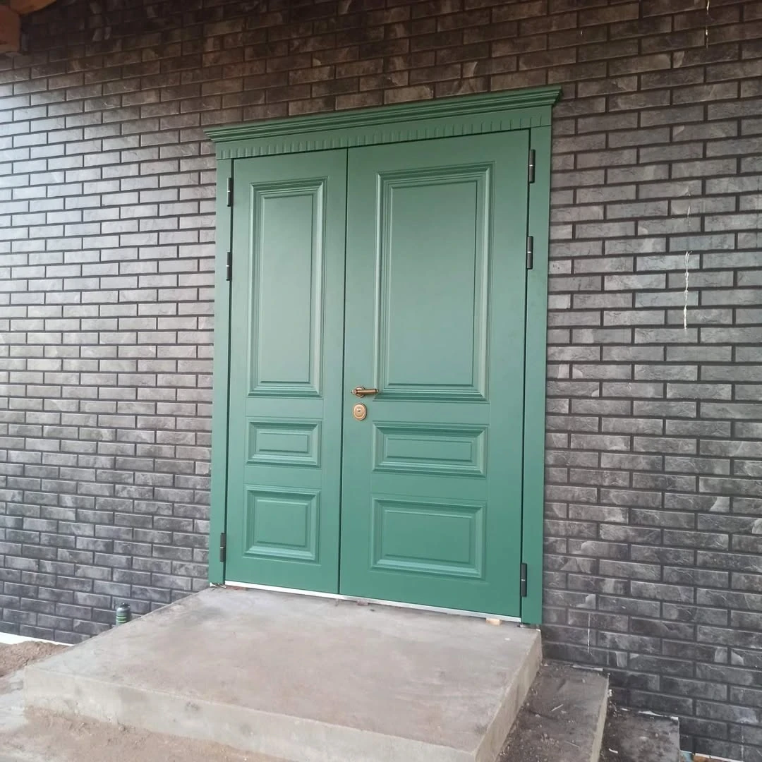 Коттеджная филенчатая дверь МДФ Зелёный чай две активные створки