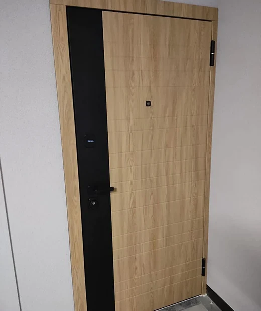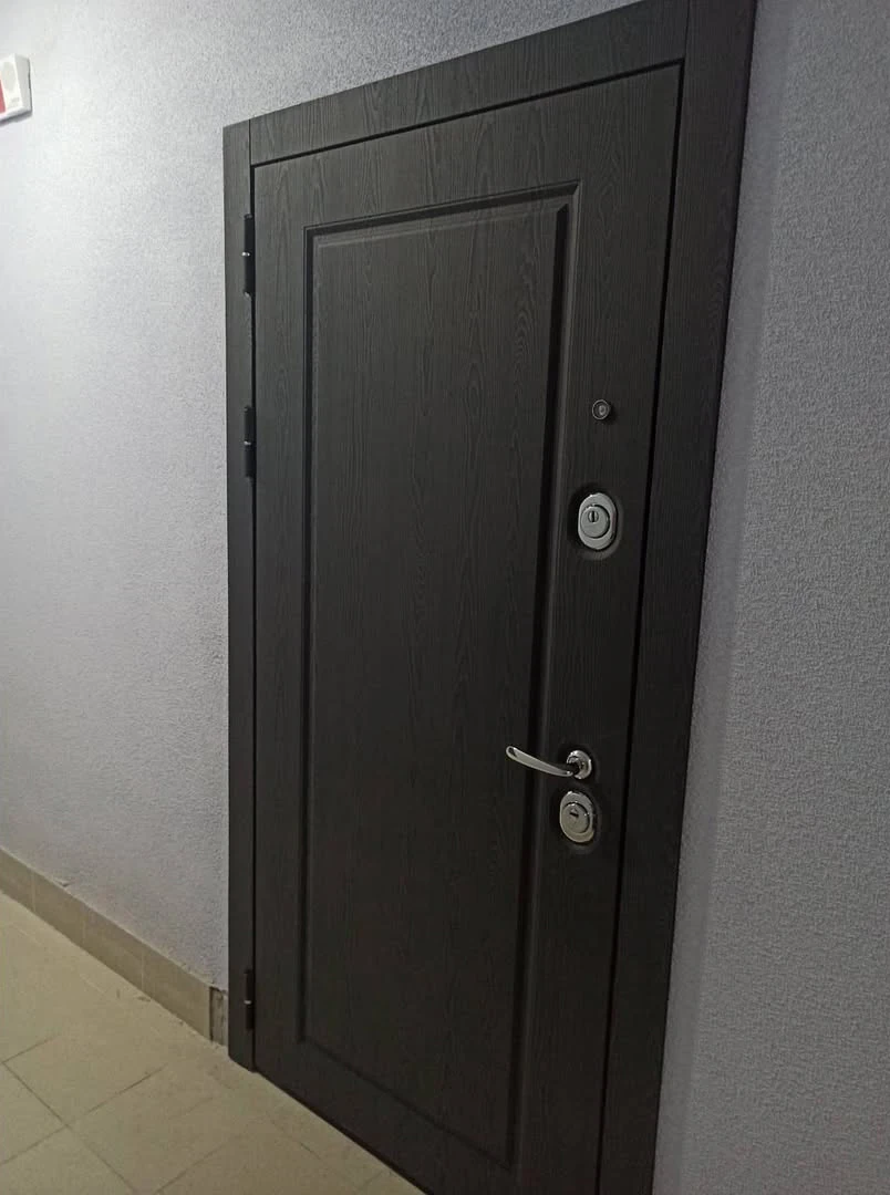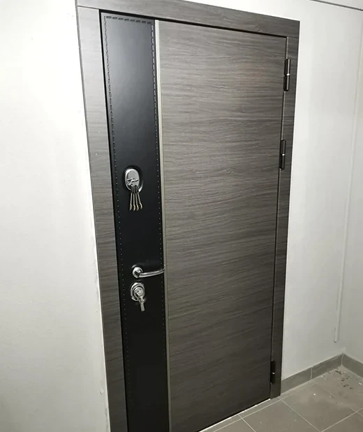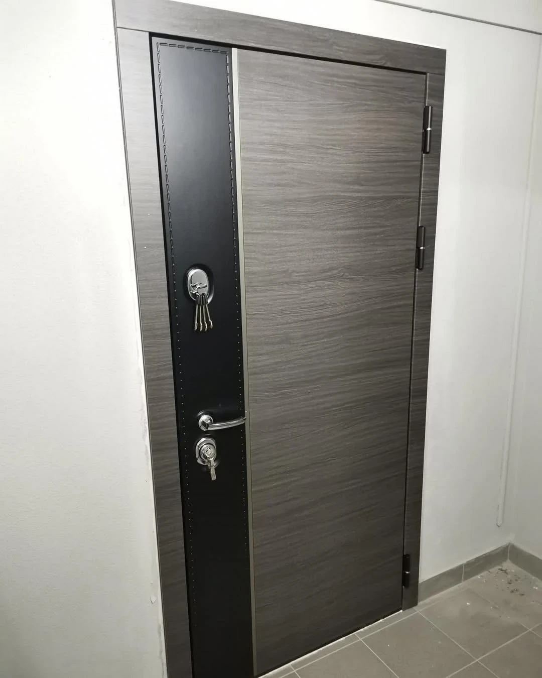 Входная дверь для квартиры комбинированная МДФ Чёрный и Дуб серый с кожей
