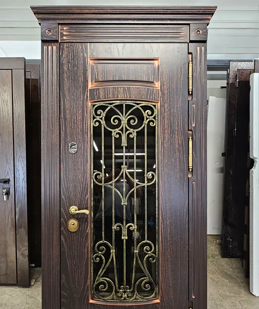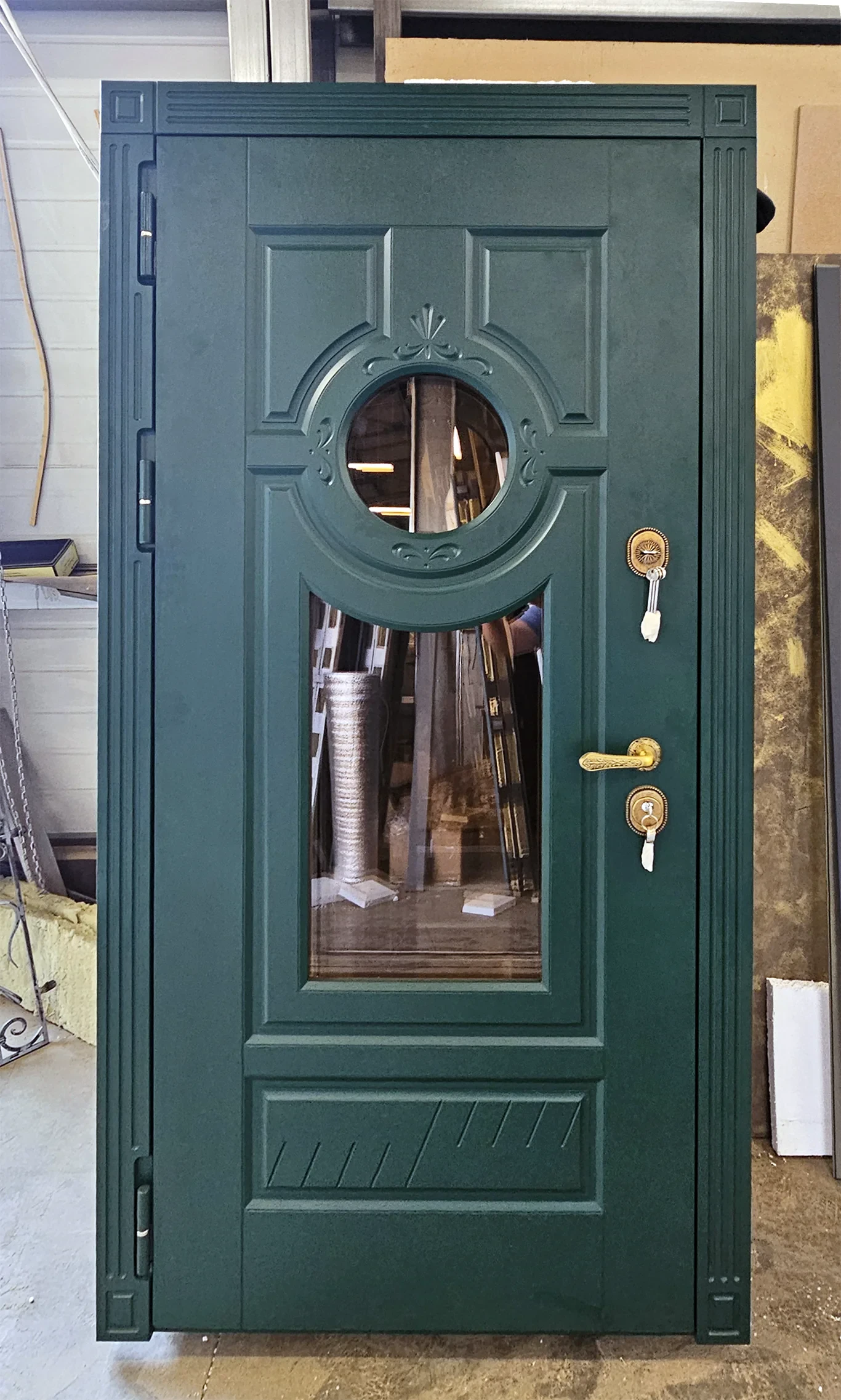 Дверь стальная коттеджная в английском стиле совмещённый стеклопакет