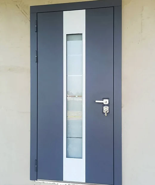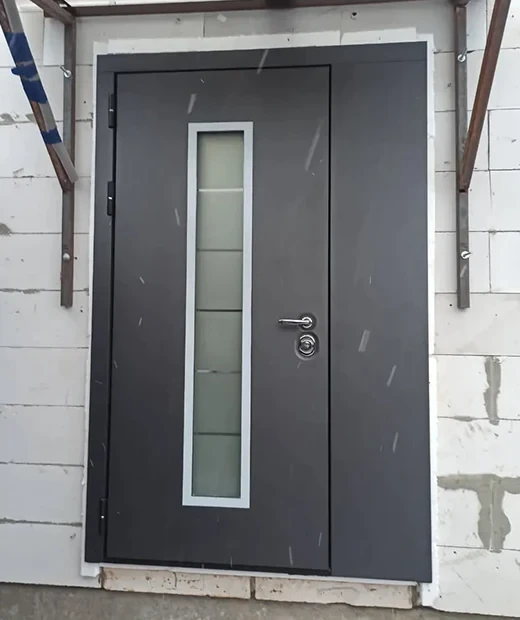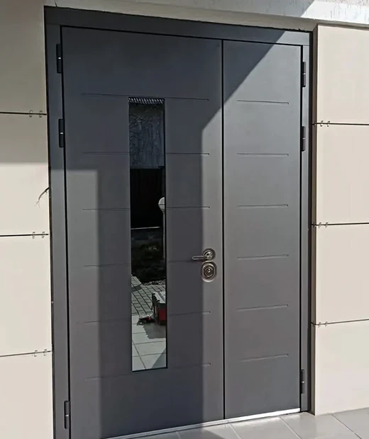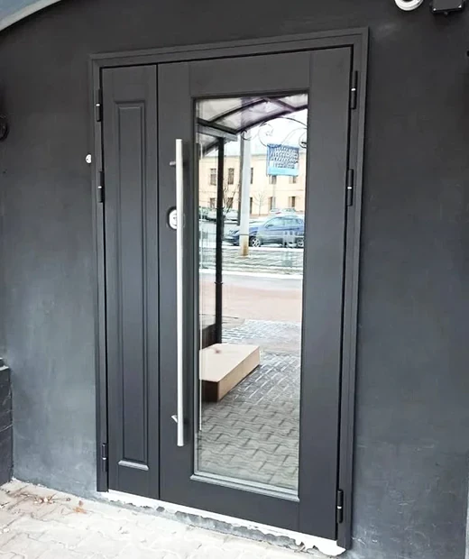 Уличная дверь с двумя створками открывания и стеклом RAL 9004