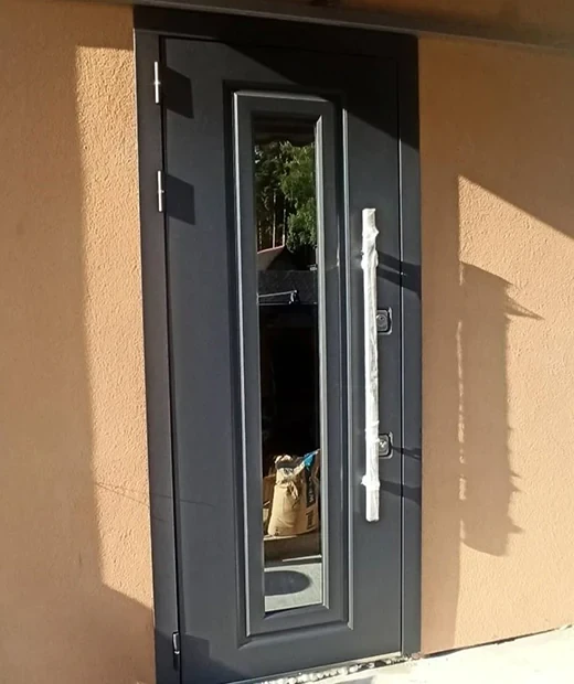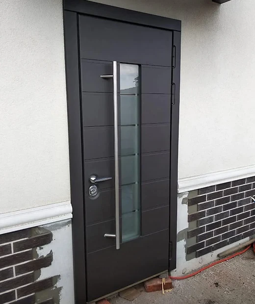 Полуторная дверь МДФ Лакрица с длинной ручкой и стеклопакетом для улицы