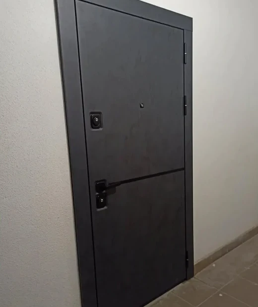 Входная дверь хай-тек МДФ антрацит с чёрной фурнитурой