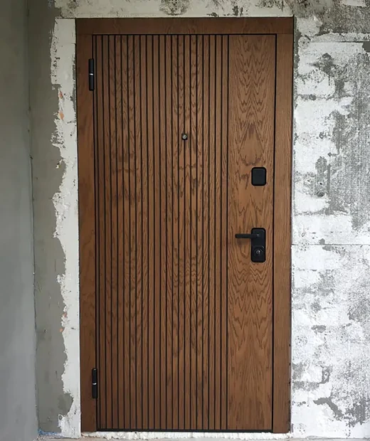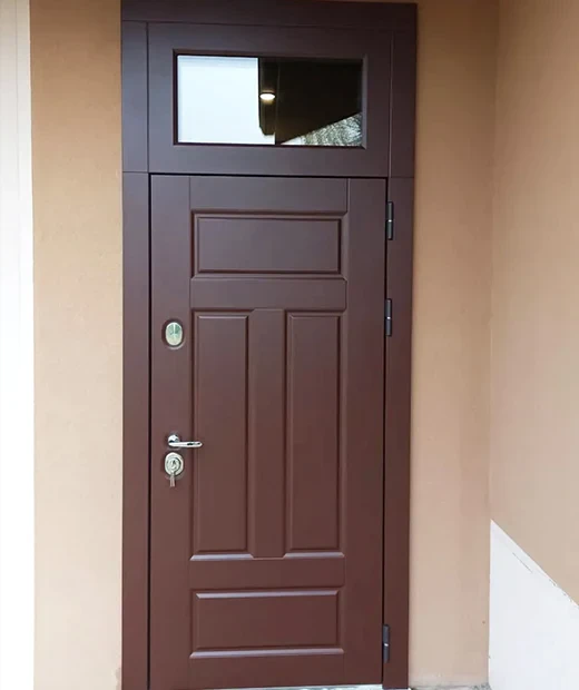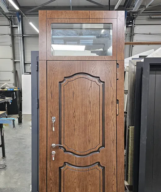 Входная дверь с верхней фрамугой со стеклопакетом МДФ Дуб рыжий