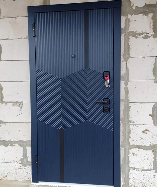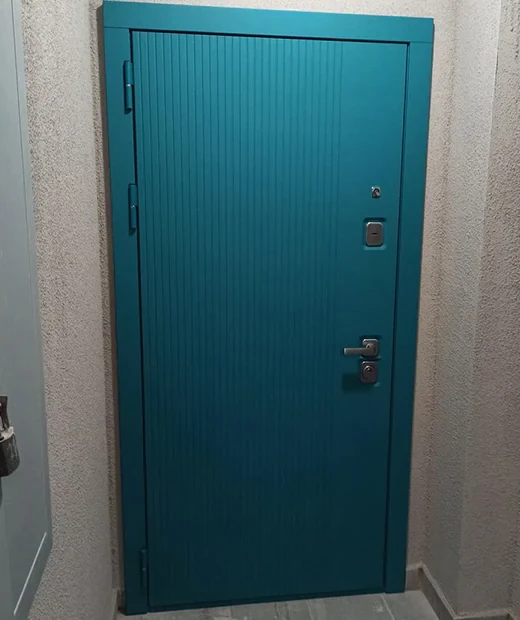 Входная дверь в стиле хай-тек МДФ Лазурно-синий матовый