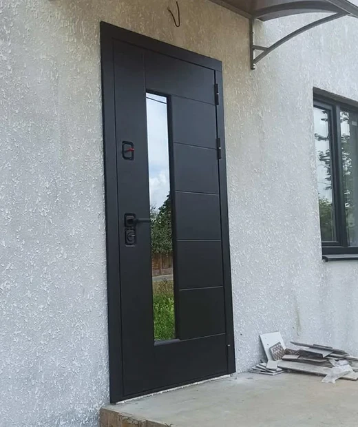 Стальная дверь для коттеджа с остеклением МДФ Грифельно-Серый