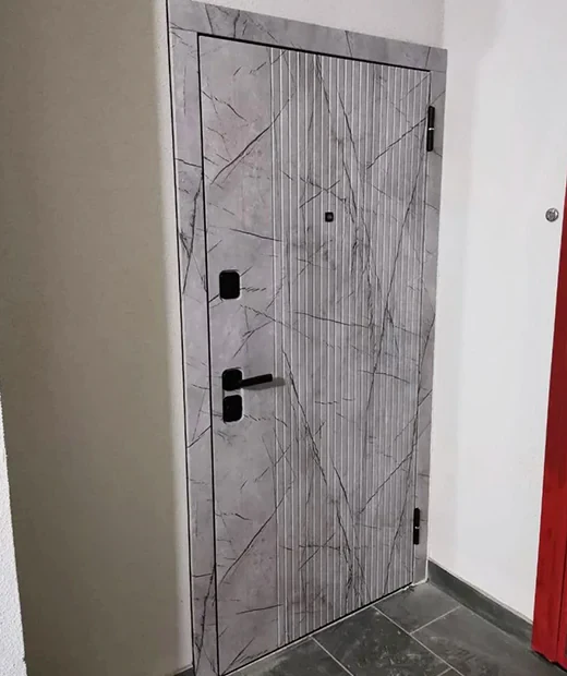 Входная дверь МДФ в современном стиле Тёмно-серый Мрамор